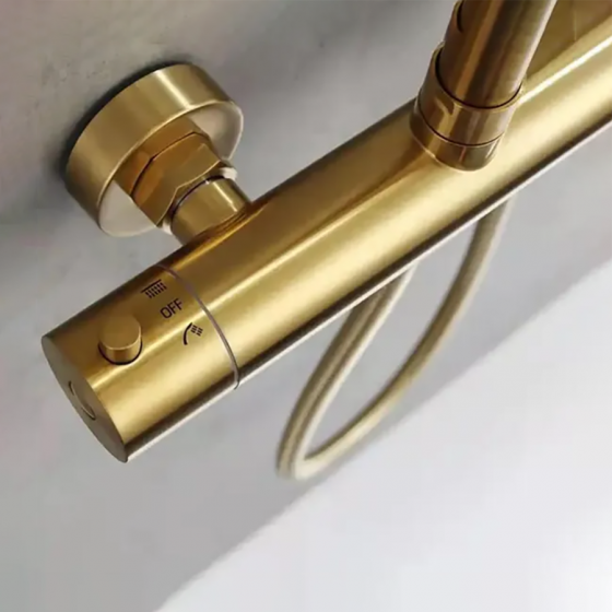 🛁 Sublimez votre salle de bain avec la colonne bain-douche Ebar 🌟 finition or brossé ! Son design raffiné apporte une touche...