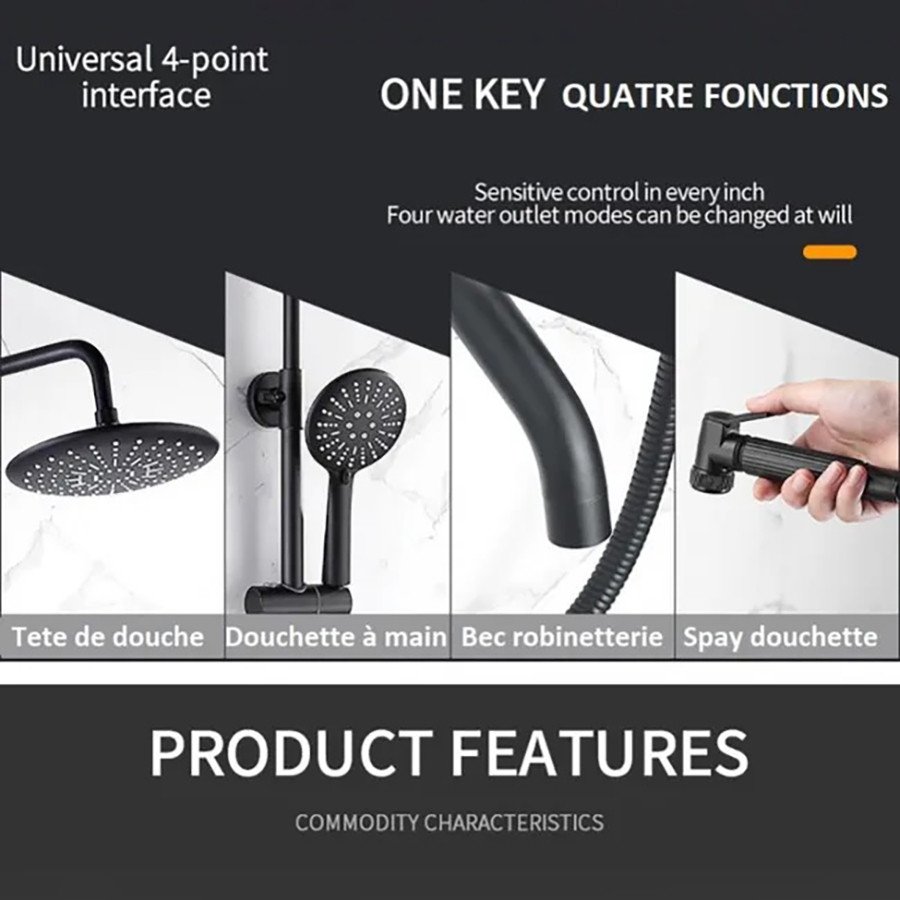 🛁 Offrez à votre salle de bain une touche moderne avec la colonne bain douche Lens noire. Son design épuré et sa finition noire mate apportent élégance et caractère à votre espace 🚿. Dotée de 3 sorties (🌀 tête pluie 25 cm, 💧 douchette à main ABS renforcé, 🪝 bec de bain), elle s’adapte à tous vos besoins. Son mitigeur en laiton garantit durabilité et confort, tandis que sa hauteur réglable (85–120 cm) assure une utilisation personnalisée pour toute la famille 👨👩👧👦. Parfaite pour les salles de bain modernes à la recherche de fonctionnalité et de style.