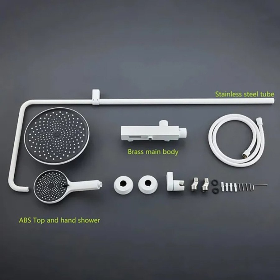 ✨ Redécouvrez votre salle de bain avec la colonne de douche blanche Léa, véritable symbole d’élégance et de modernité. Grâce à sa finition blanche éclatante 🤍, elle insuffle une ambiance apaisante et raffinée à votre espace. Conçue en laiton haut de gamme, elle offre une durabilité exceptionnelle et résiste parfaitement à l’humidité. 🌧️ Dotée d’une pomme de douche de 25 cm pour une pluie enveloppante, d’un bec dissimulé pour un design épuré, et d’un inverseur 3 voies pratique, Lhéa propose une expérience sur mesure. La douchette à main 3 fonctions 🚿 permet d’ajuster la puissance du jet selon vos envies pour une relaxation optimale. Facile à installer et ajustable en hauteur, cette colonne s’adapte à tous les espaces. 💧 Optez pour Lhéa, la colonne murale qui allie design épuré, technologie fiable et bien-être quotidien.