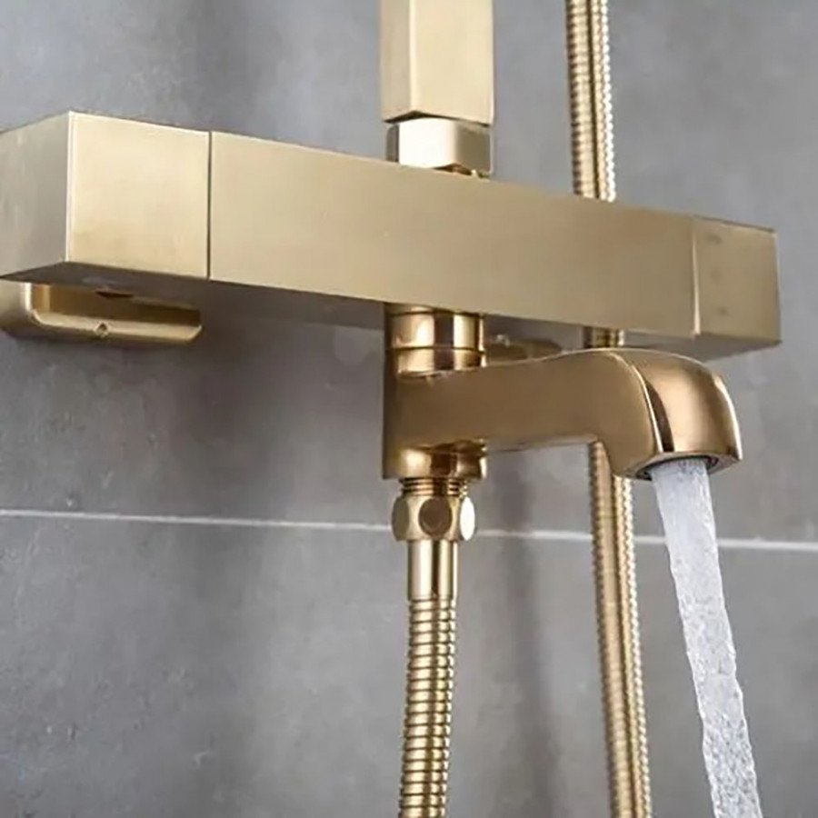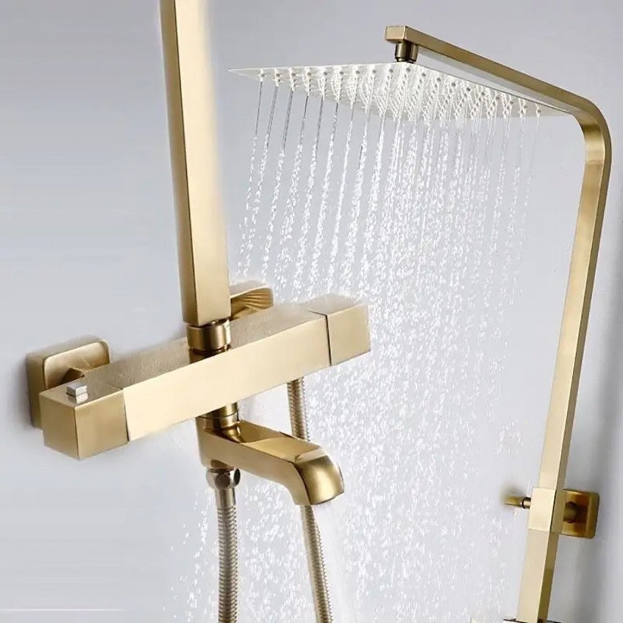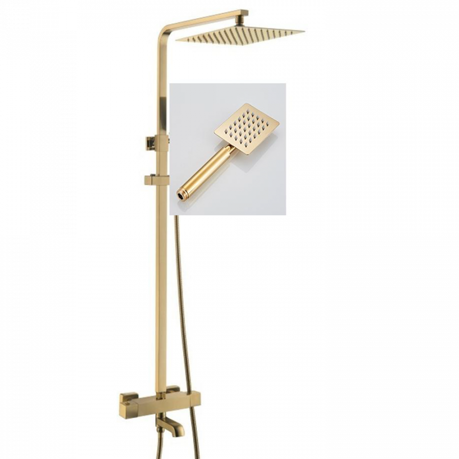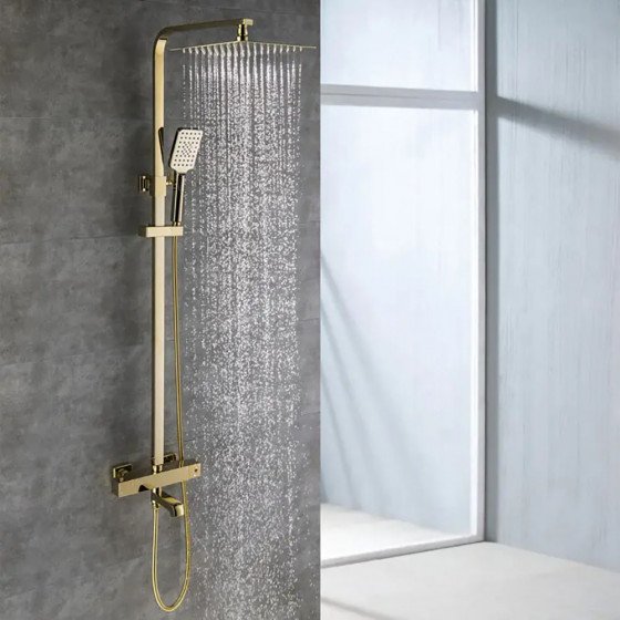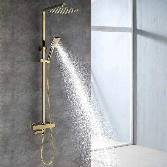 ✨ Sublimez votre salle de bain avec la colonne bain-douche thermostatique dorée Cécile, parfaite alliance entre confort haut de gamme et design raffiné. Dotée d’une tête de douche carrée 20x20 cm 🌧️, de deux douchettes à main 🚿 en acier inoxydable et d’un bec de bain intégré 🛁, elle vous offre une expérience sur mesure. Son système thermostatique assure un contrôle précis de la température 🌡️ pour un bien-être absolu. Grâce à sa finition or brossé 💛, elle apporte une touche luxueuse et chaleureuse à votre espace. Résistante, élégante, et facile à installer, cette colonne transformera chaque douche en un moment d’évasion.