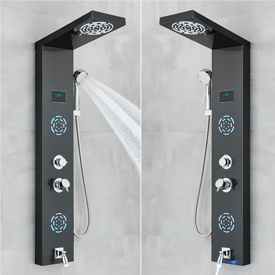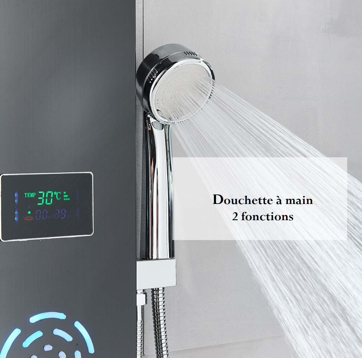 💧 Horus redéfinit la douche moderne avec son panneau mural LED hydromassant élégant 🌟. Son écran LCD intégré affiche température, temps et débit en temps réel, pour un confort total sans surprise. Grâce à ses buses frontales massantes et sa douchette multifonction, chaque instant sous l’eau devient une pause bien-être 🌿. Offrant pluie apaisante ou jets toniques, Horus fonctionne sans pile ni électricité ⚡, via un système LED autonome. Fabriqué en matériaux haut de gamme, il allie design épuré, technologie éco-responsable et installation murale facile. Transformez votre salle de bain en spa personnel avec Horus 🛁✨.