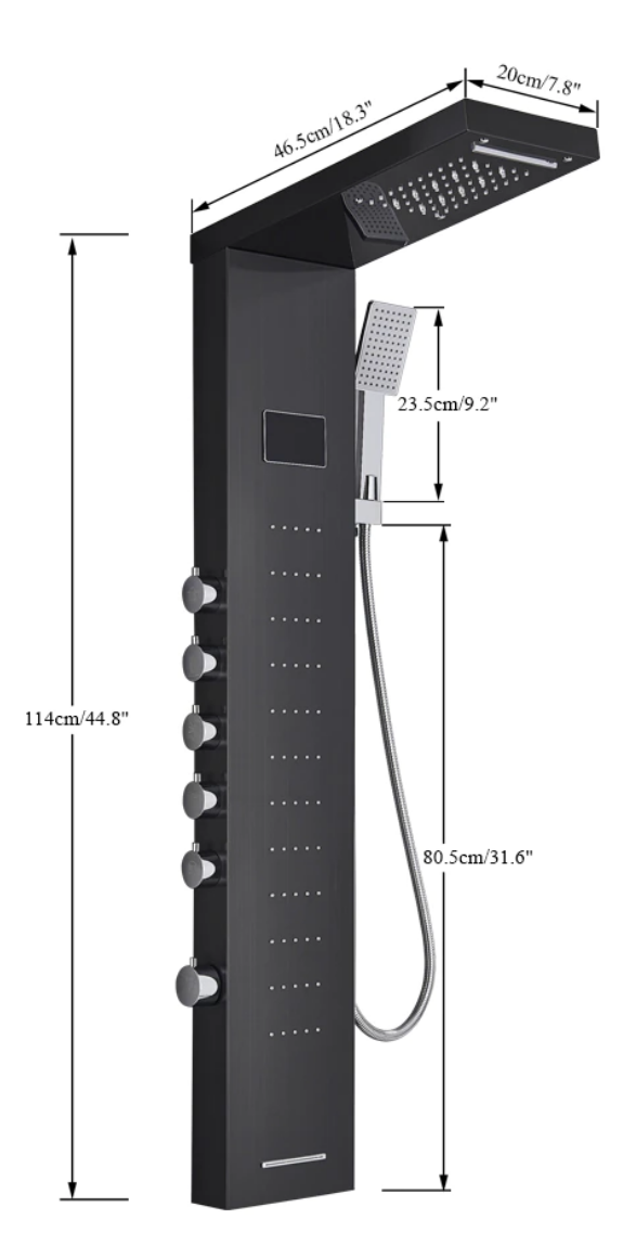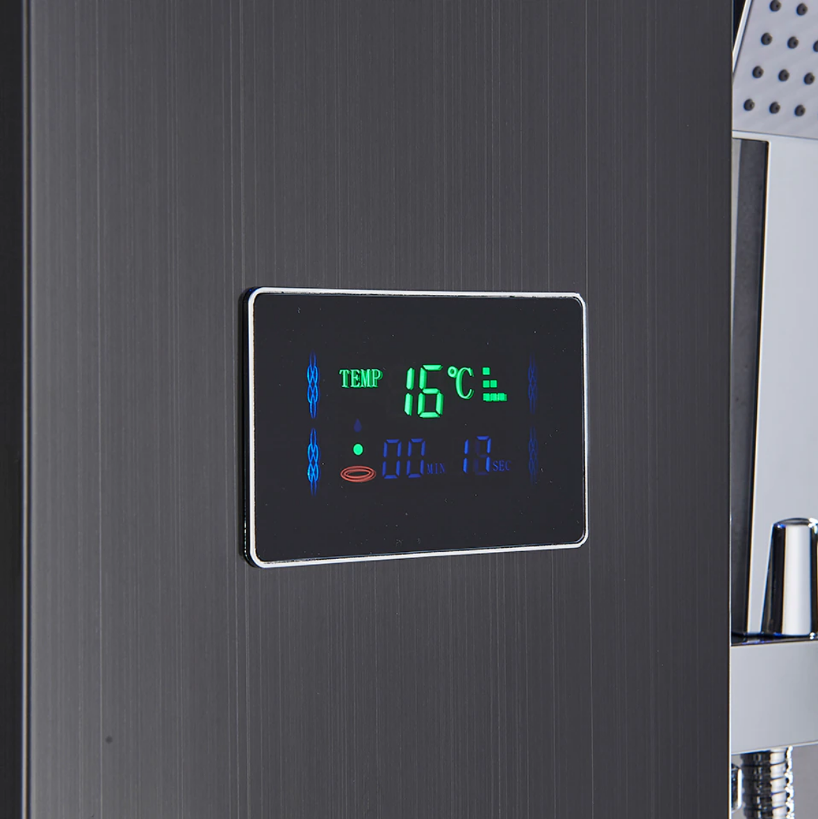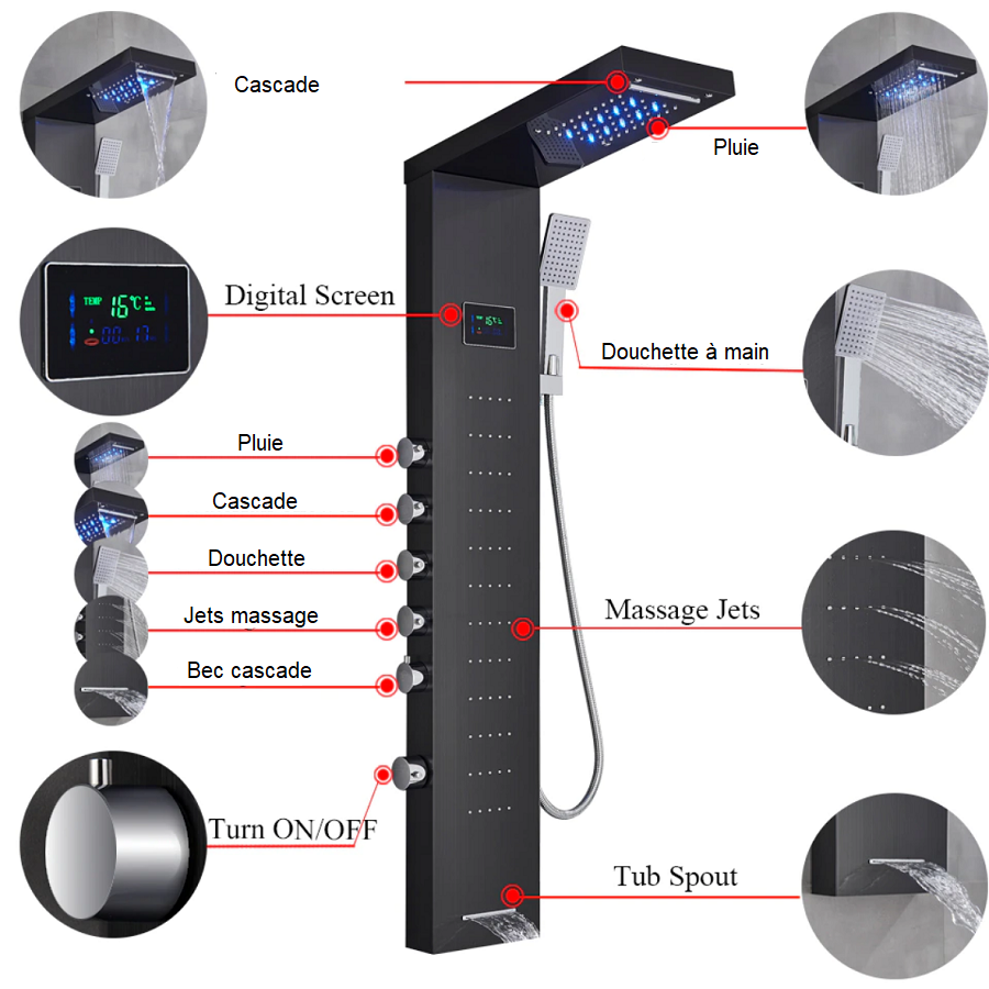 💧 Offrez à votre salle de bain une touche de modernité avec le panneau de douche LED digital Milan. En acier inoxydable 🛠️, haut de 120 cm, ce système encastré chic et sobre propose 4 fonctions de douche 🌧️💆♂️🚿, pour un confort personnalisé. L’écran digital sans pile ni électricité 🔋 vous affiche température 🌡️, durée ⏱️ et consommation d’eau 💧, pour une expérience maîtrisée et responsable. Sa finition noire élégante s’intègre parfaitement dans les salles de bain contemporaines, apportant luxe discret et bien-être au quotidien. Un choix haut de gamme qui allie design, technologie et efficacité énergétique ✅.